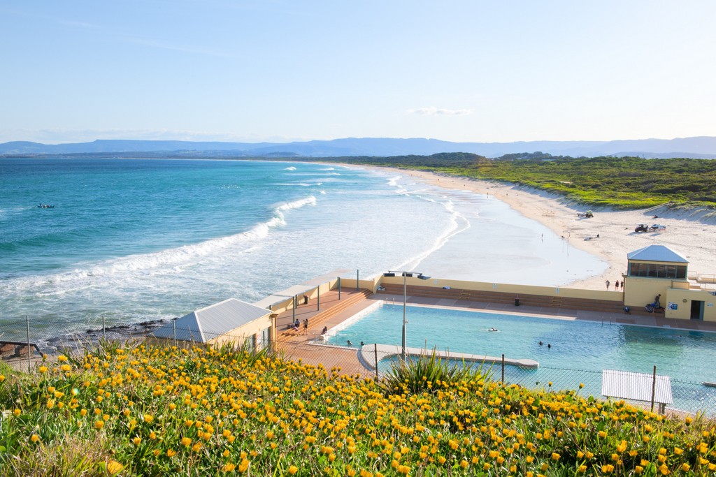 Photo Description: An iconic view captured on a beautiful Spring day in the Illawarra. This is Port Kembla beach which has been voted Australia's cleanest beach and that is the Port Kembla Olympic swimming pool over to the right.